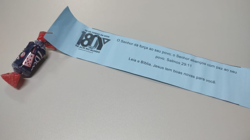 No último sábado (08), a Liderança da ACM Região das Hortênsias realizou uma ação especial em comemoração ao aniversário de 180 anos da ACM. A iniciativa consistiu na distribuição de balas com um versículo bíblico. A ação foi voltada para a comunidade de Canela, incluindo lojistas, turistas e moradores locais.
