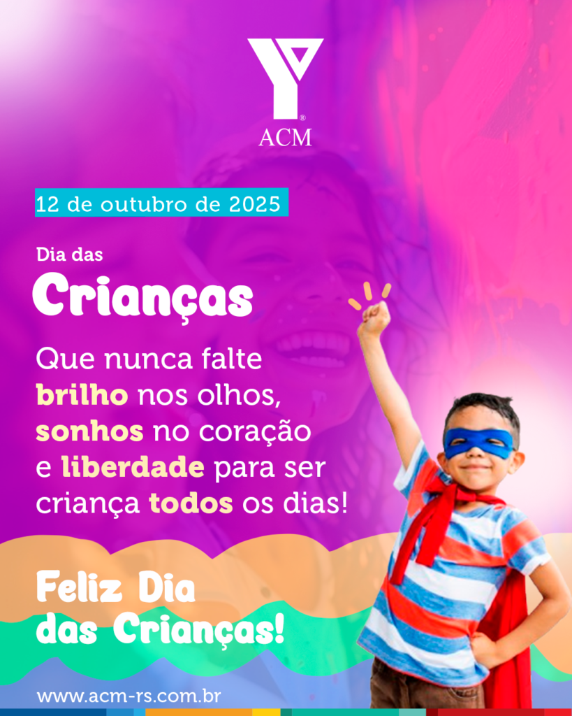 12 outubro 2025 A ACM-RS deseja um Feliz Dia das Crianças Ser criança é acreditar que tudo é possível.É transformar o simples em mágico, o pequeno em grandioso e o agora em eternidade.A ACM-RS deseja um Feliz Dia das Crianças! Gostou? Compartilhe essa notícia com seus amigos. Tweetar Compartilhar WhatsApp