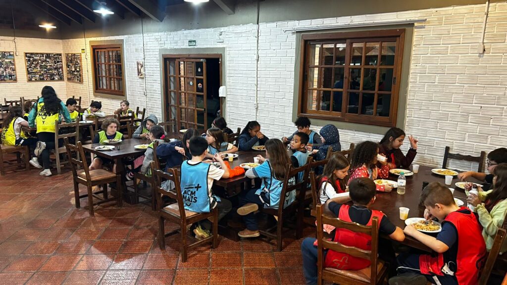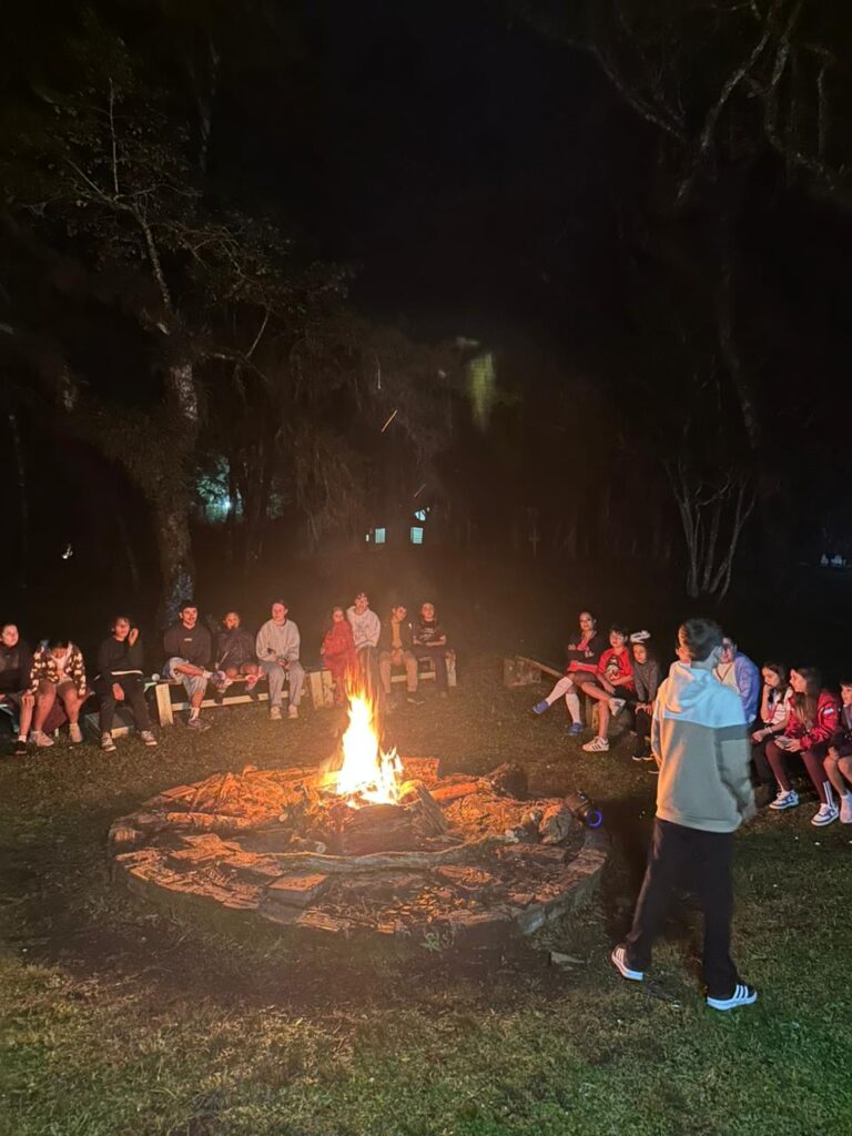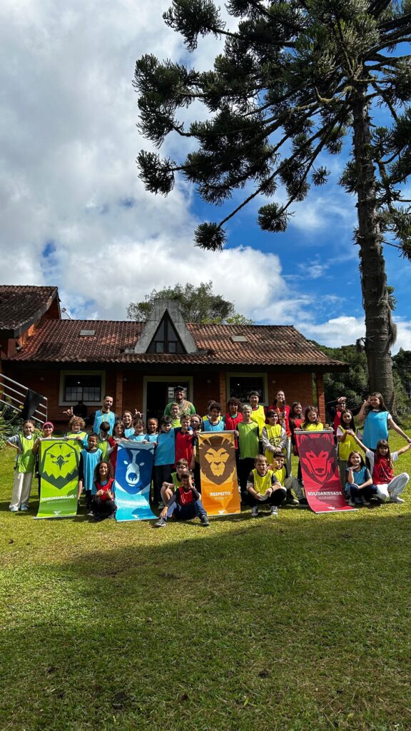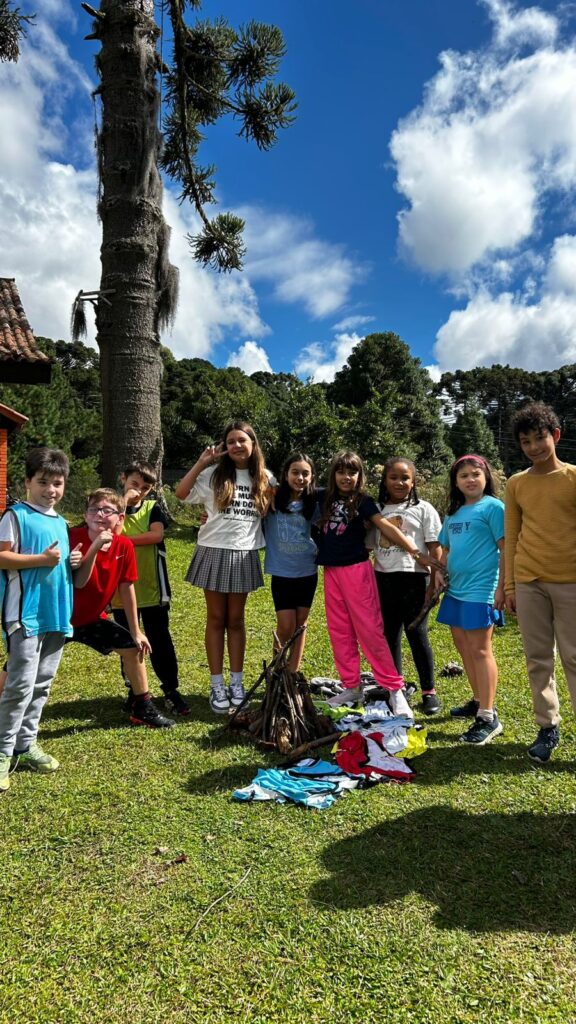 Foram mais de 30 participantes e a programação incluiu trilha, jogos educativos, gincana, fogueira, badala infantil e passeios ao Frorybal e ao Alpen Park, com acompanhamento dos professores da ACM Mais.