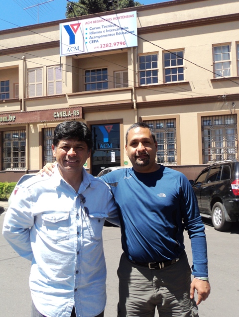 Jesus Mostaceros (esquerda), secretário executivo da ACM Região das Hortênsias, ao lado de Pedro Pacheco, em frente à sede da Unidade em Canela.