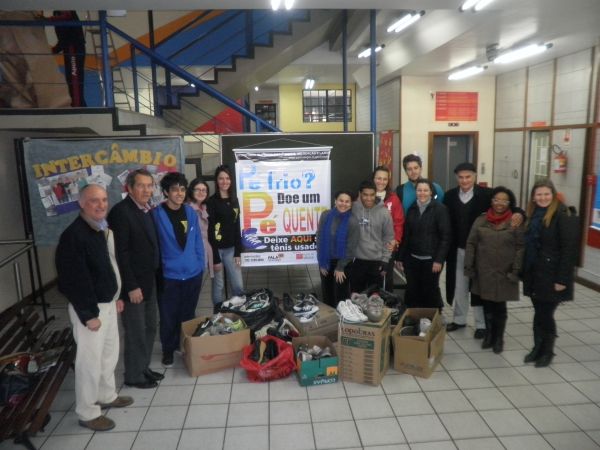 Na manhã desta sexta-feira, 20 de julho, um grupo de alunos do Colégio ACM Centro fez a entrega de 360 pares de tênis ao secretário municipal de esportes, recreação e lazer de Porto Alegre, José Edgar Meurer. A arrecadação dos sapatos, denominada de Campanha Pé Quente, foi uma das tarefas da Gincana do Colégio, realizada recentemente. A doação será feita em vilas onde a Prefeitura mantém ações sociais e desportivas.