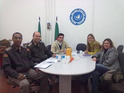 Na busca de parcerias para o Projeto Justiça Juvenil Restaurativa na Comunidade, a equipe da CPR COM Cruzeiro reuniu-se com o chefe da Assessoria de Direitos Humanos da Brigada Militar, Major Paulo Cesar Franquilin Pereira, no dia 22 de junho. Acompanhou a reunião o Major Marcel Vieira Nery da Assessoria Jurídica da Brigada Militar.