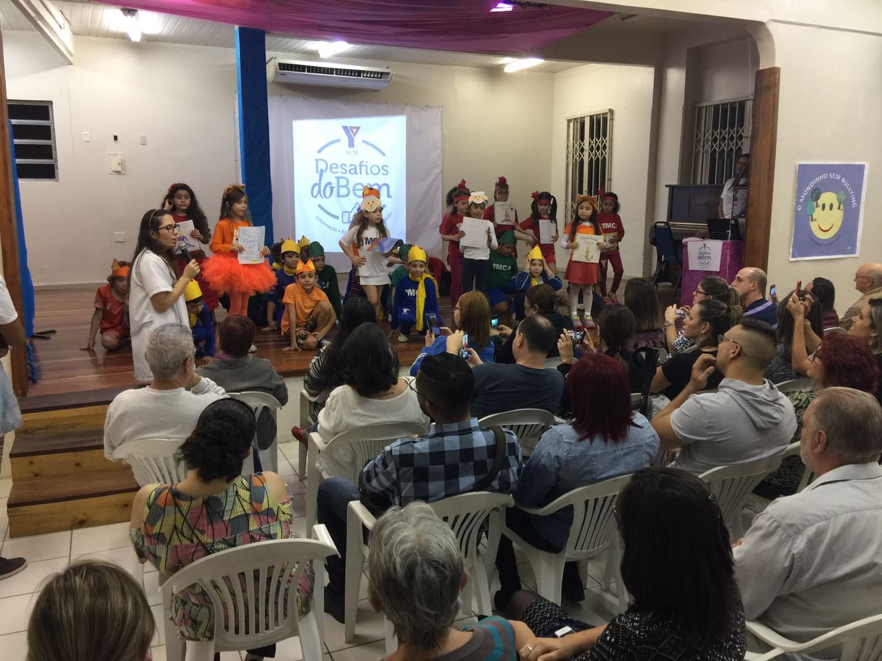 No Auditório lotado, o evento iniciou com a palavra do Diretor Cyro Leães, que fez um devocional e discursou sobre a importância da construção conjunta entre família e escola. Logo após, a assessora de ensino Rosangela Bortolini explicou aos pais sobre as dinâmicas do projeto Desafios do Bem e passou a palavra para as professoras.