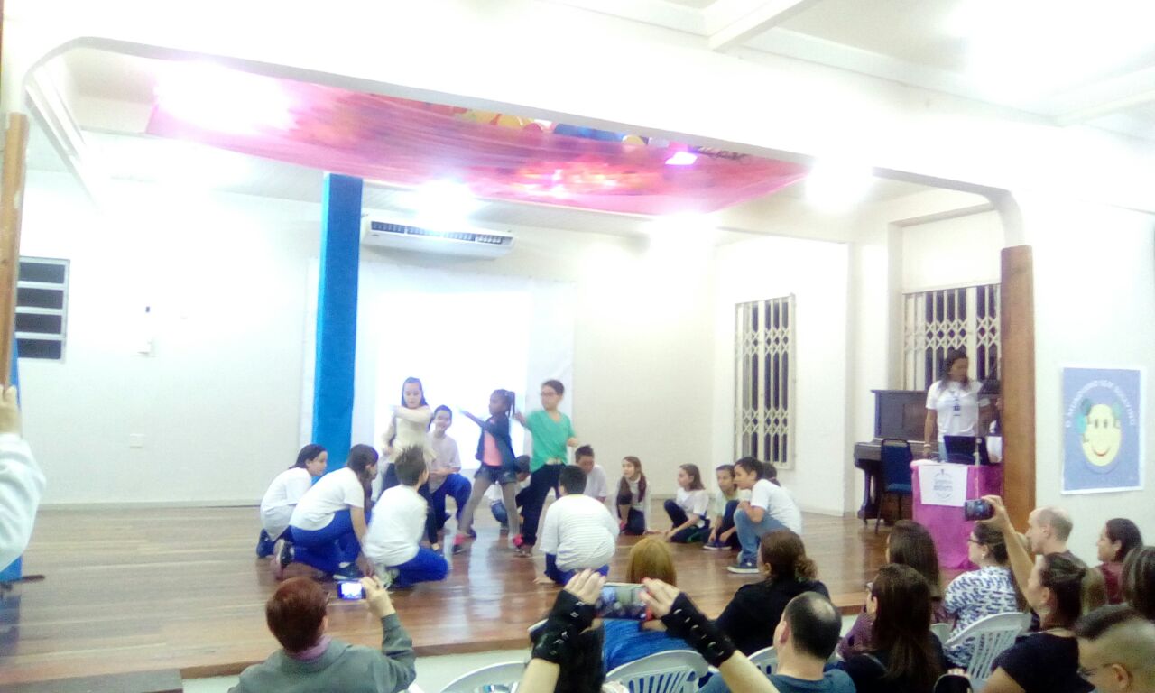 Após, a turma 51 apresentou suas construções de histórias em quadrinhos. Cada grupo apresentou a sua história, que abordava situações de conflito e bullying. A turma 41 encenou diferentes situações de conflitos e suas possibilidades de conciliação, seguida pela leitura de uma bela mensagem. Já a turma 31 apresentou uma linda coreografia!