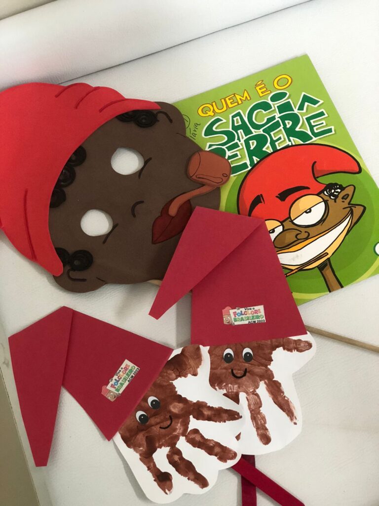 O tema do Folclore foi cuidadosamente tecido ao longo das aulas, cativando a atenção dos pequenos corações. E como finalização, as turminhas participaram de uma atividade de confecção: eles tiveram a oportunidade de criar o pé do Curupira e a máscara do Saci Pererê.