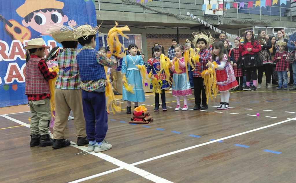 Um dos destaques do dia foi as apresentações dos alunos, que encantaram o público com coreografias e encenações típicas. As turmas da Educação Infantil ao Ensino Médio participaram com quadrilhas, casamento na roça, fogueira simbólica e até números musicais com bateria e escaleta, apresentados pelos estudantes dos terceiros anos. As turmas do Maternal e Jardim emocionaram com uma apresentação especial utilizando bonecos feitos à mão.