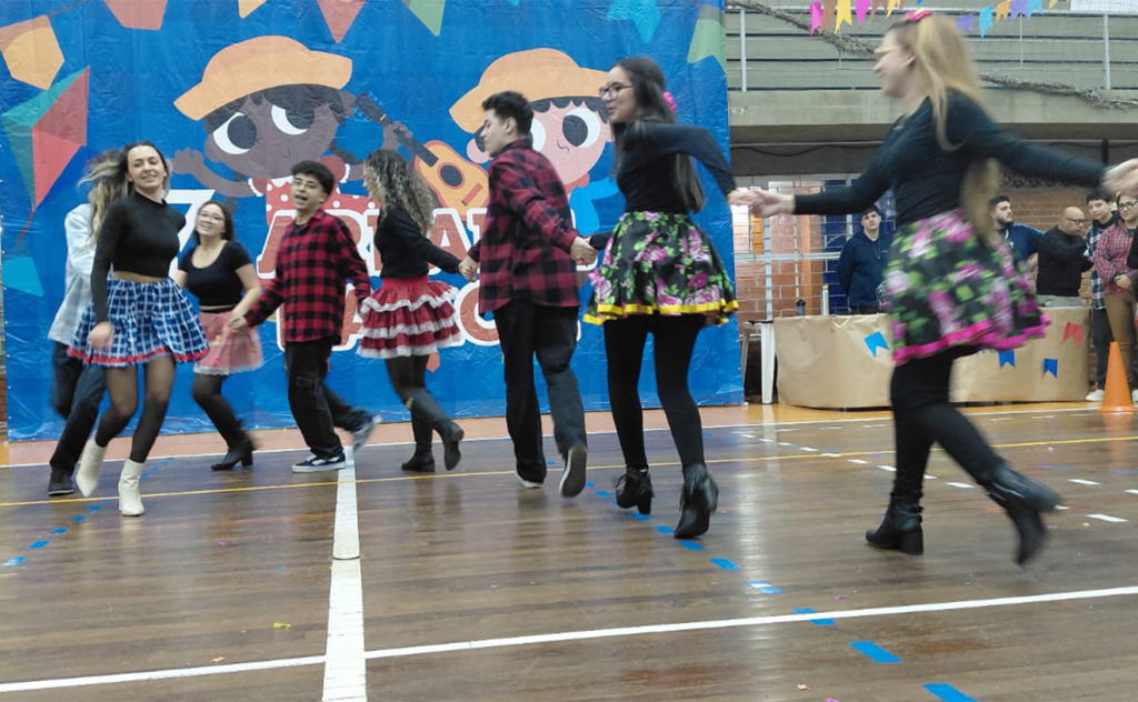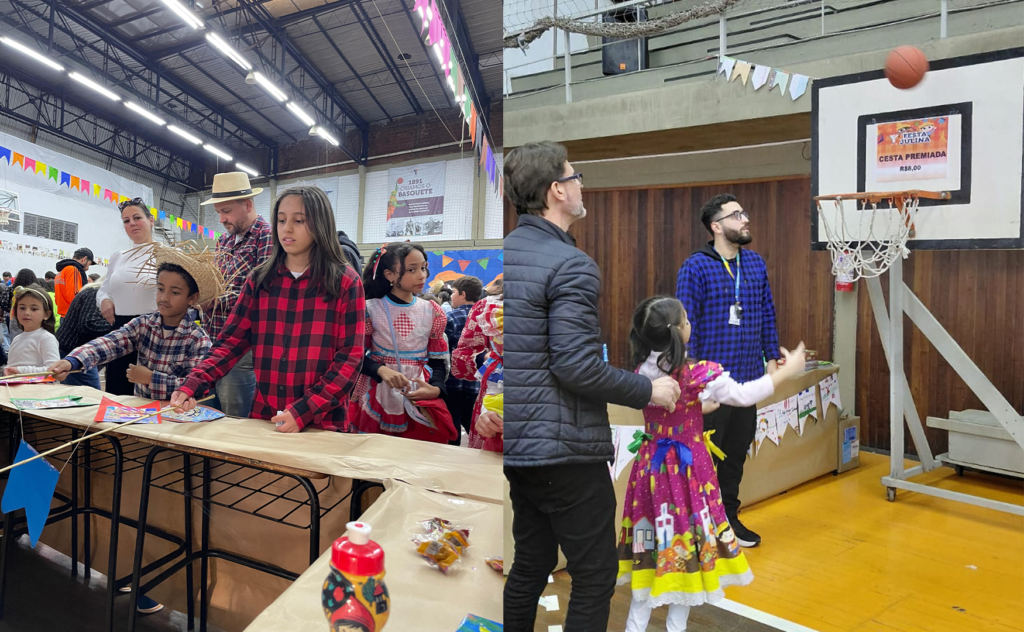 O ginásio da unidade se transformou em um verdadeiro arraial, com barracas de comidas típicas, brincadeiras juninas, como pescaria e acerto na cesta de basquete — entre outras diversas —, além da divertida prisão e espaços temáticos para fotos. Entre as dinâmicas, a clássica Dança das Cadeiras fez a alegria dos participantes, promovendo momentos de descontração e interação entre os convidados.