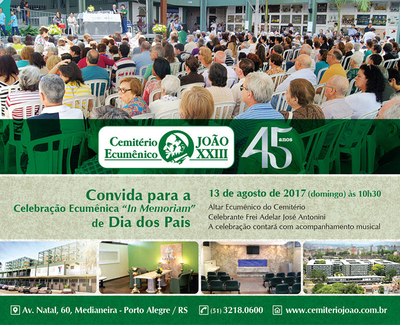 10 agosto 2017 Convite para a Celebração Ecumênica de Dia dos Pais no Cemitério João XXIII Gostou? Compartilhe essa notícia com seus amigos. Tweetar Compartilhar WhatsApp