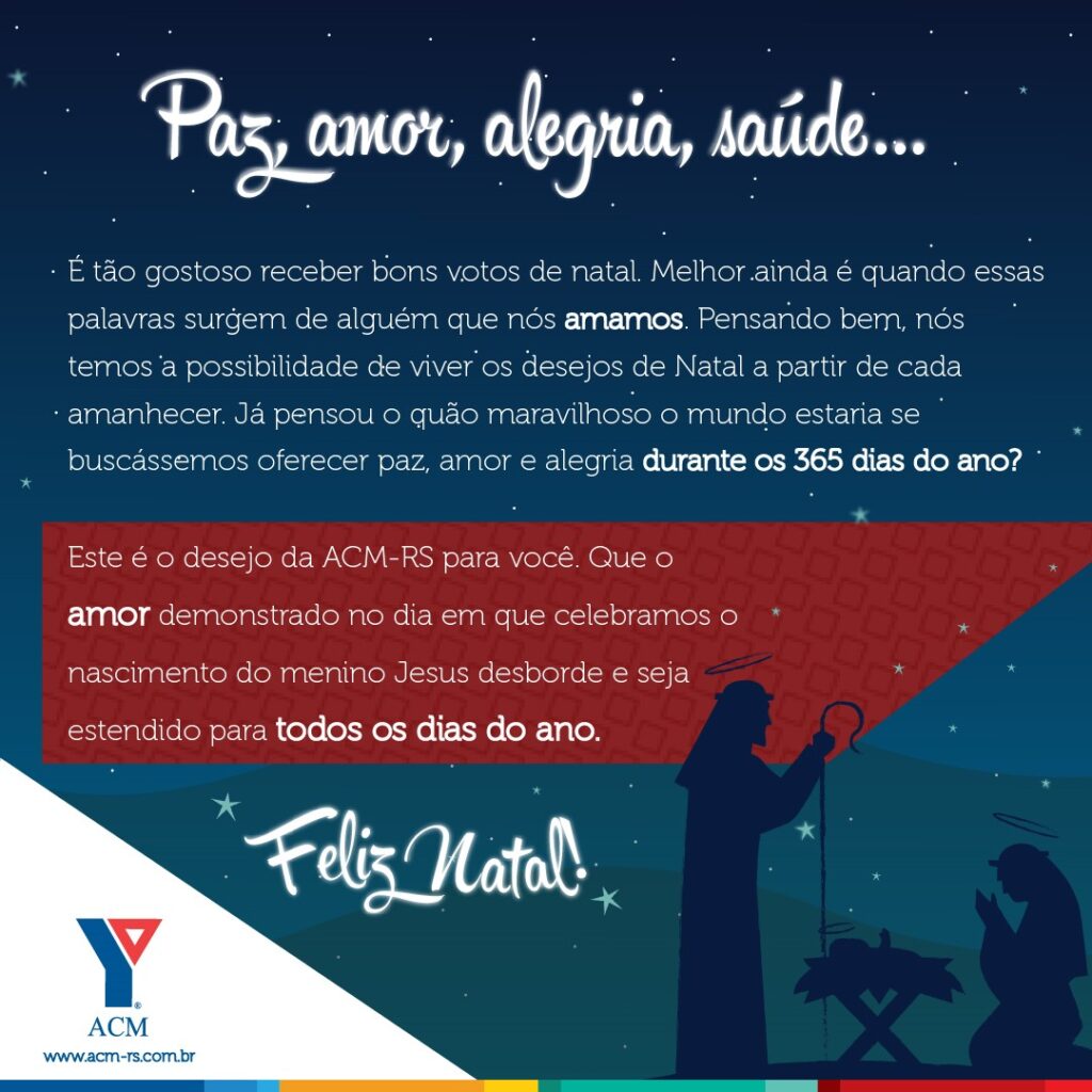 24 dezembro 2021 A ACM-RS deseja um Feliz Natal Que bom seria se vivêssemos os desejos de Natal todos os dias. Aproveite esta época de festas para refletir sobre como podemos oferecer mais paz, alegria e amor a cada novo dia. Feliz Natal! Gostou? Compartilhe essa notícia com seus amigos. Tweetar Compartilhar WhatsApp