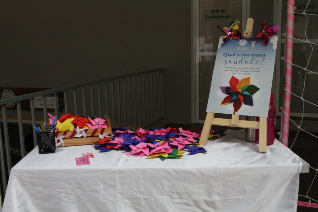 A programação buscou acolher o público de forma sensível e humanizada. Uma das ações que mais chamou a atenção foi a intervenção interativa “Qual a sua maior saudade?”, onde os visitantes foram convidados a escrever mensagens e partilhar lembranças, criando um painel coletivo de memórias em cata-ventos de papel.
