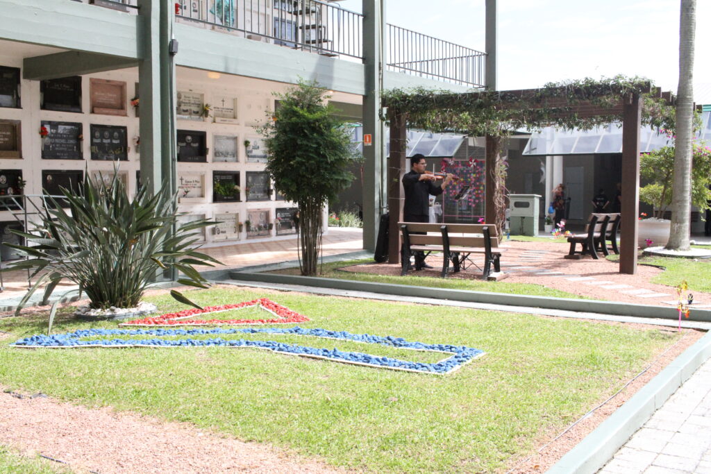 A música, mais uma vez, esteve presente em diferentes pontos do cemitério, trazendo suavidade ao ambiente com apresentações ao vivo que acompanham o fluxo de visitantes ao longo do dia.
