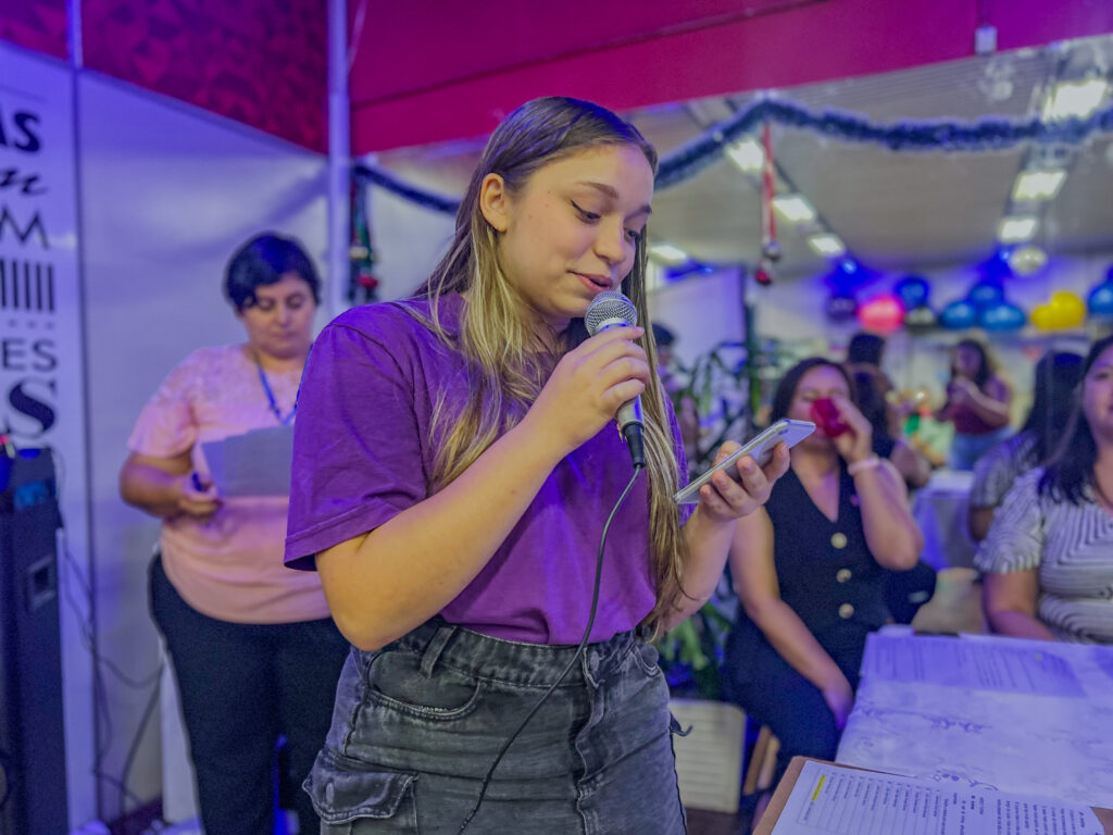 Os jovens Dandara Duarte e Eric Gabriel realizaram a leitura do Devocional, enquanto Yasmin Castro e Victoria Leal discursaram em nome da turma, emocionando a todos com palavras inspiradoras sobre a jornada e os aprendizados adquiridos.