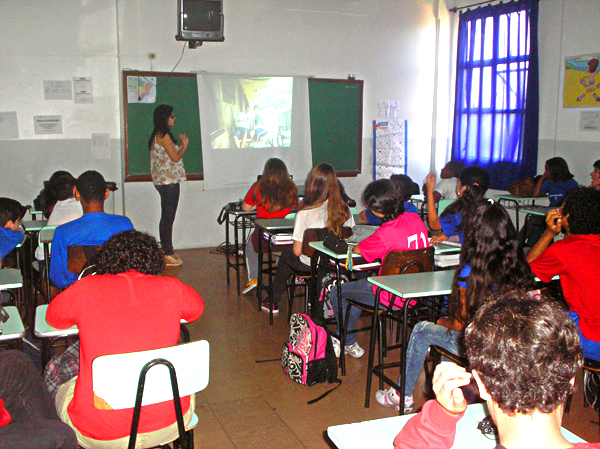 A convite da professora de inglês Nadua Taylor, a ex-aluna do Colégio ACM Centro Ana Karolina Souza conversou com alunos sobre como foi sua experiência com um intercâmbio pelos EUA por meio do programa de intercâmbios da ACM Internacional.