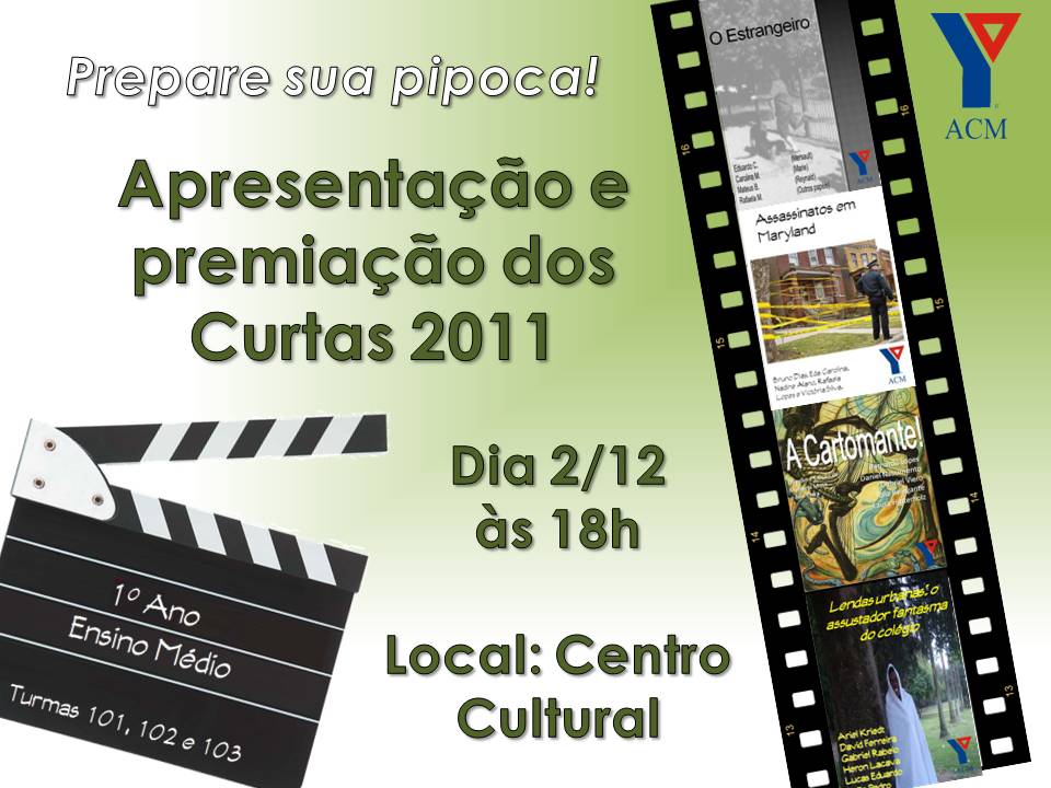 Nesta sexta-feira, dia 2 de dezembro, os curtas produzidos pelas turmas do 1o ano do Ensino Médio do Colégio ACM Centro serão exibidos no Centro Cultural da ACM Centro. Uma comissão julgadora analisará os vídeos e premiará os melhores curtas.