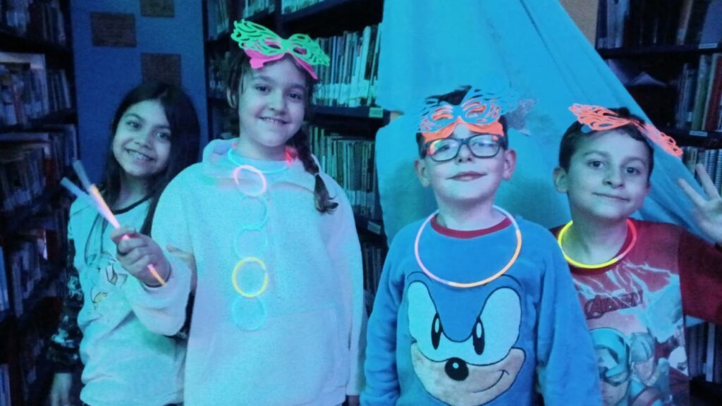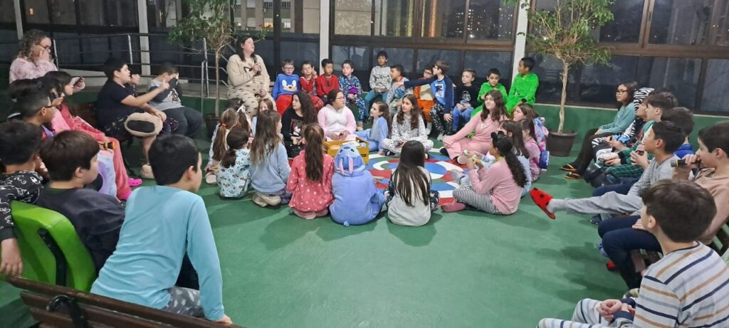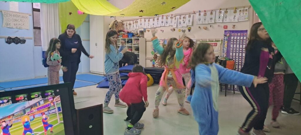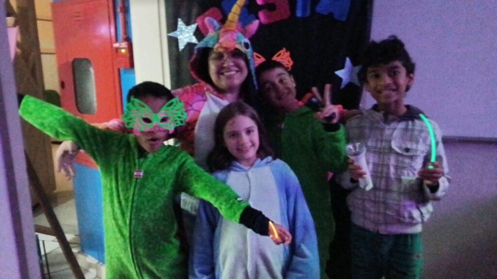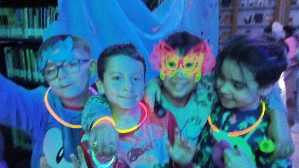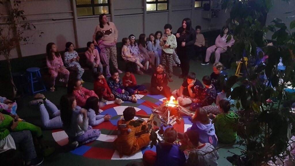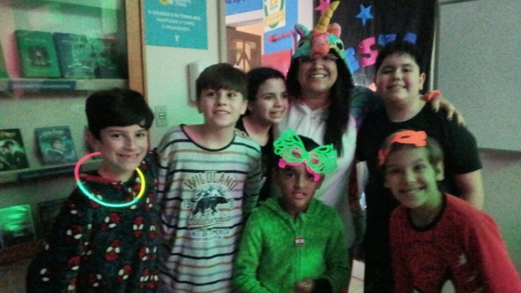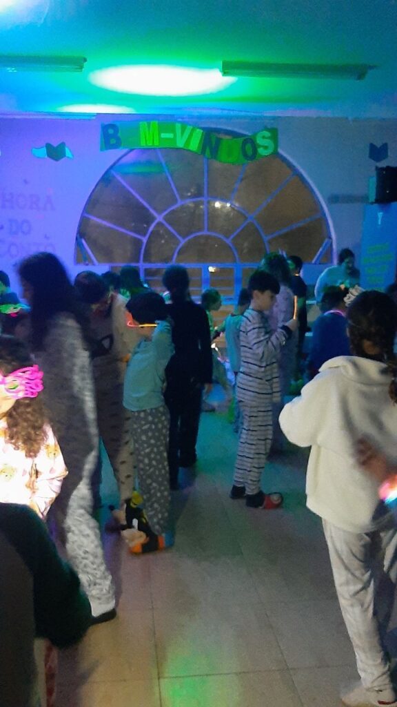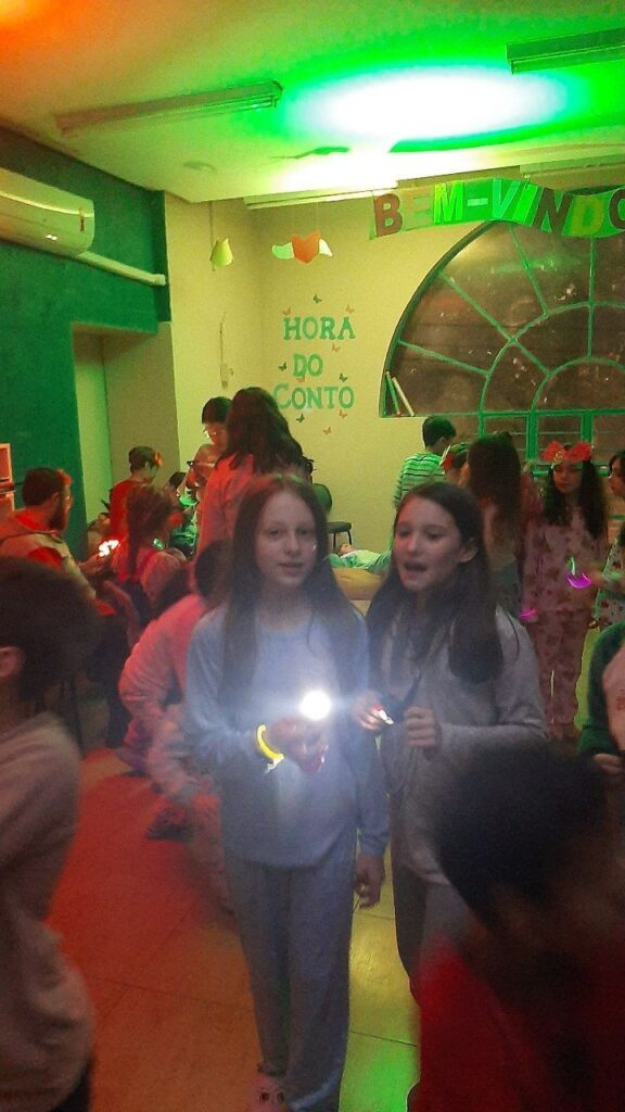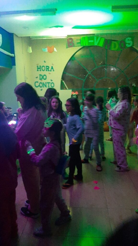 Foi uma noite inesquecível, repleta de diversão, literatura e pura fantasia. Nossas crianças se encantaram com a riqueza das histórias, caça aos personagens e ainda aproveitaram uma baladinha super animada!