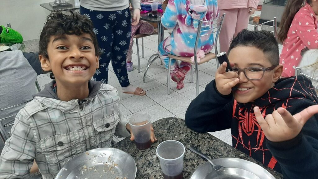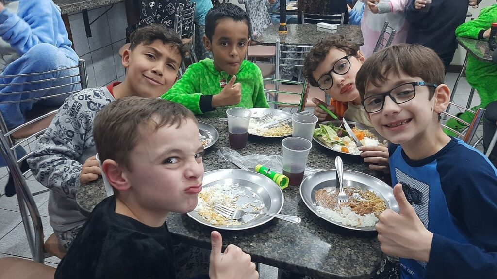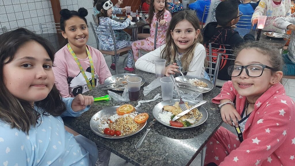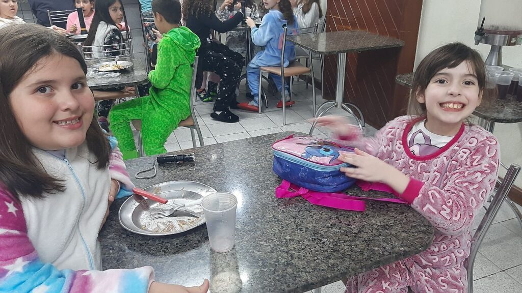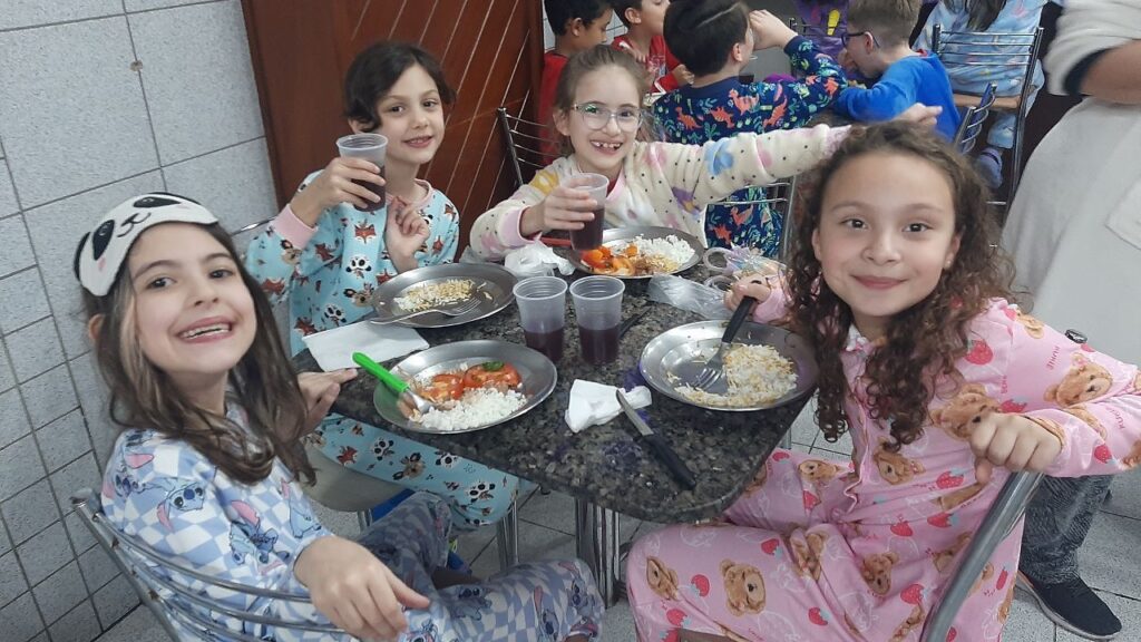Teve até jantar e café da manhã, tornando essa noite ainda mais especial. Cada detalhe fez com que essa experiência se tornasse única e mágica, marcando para sempre a memória dos nossos pequenos.