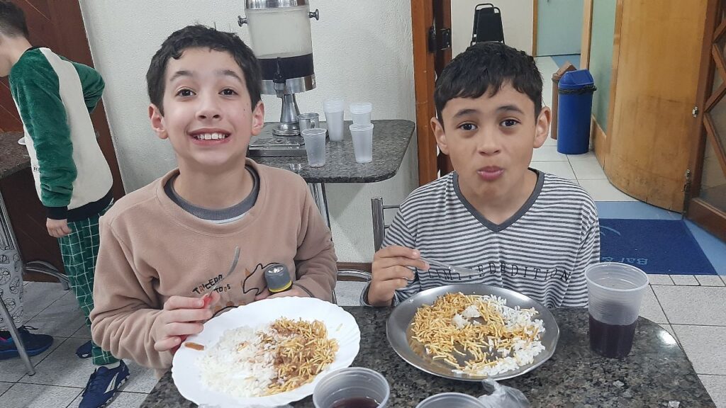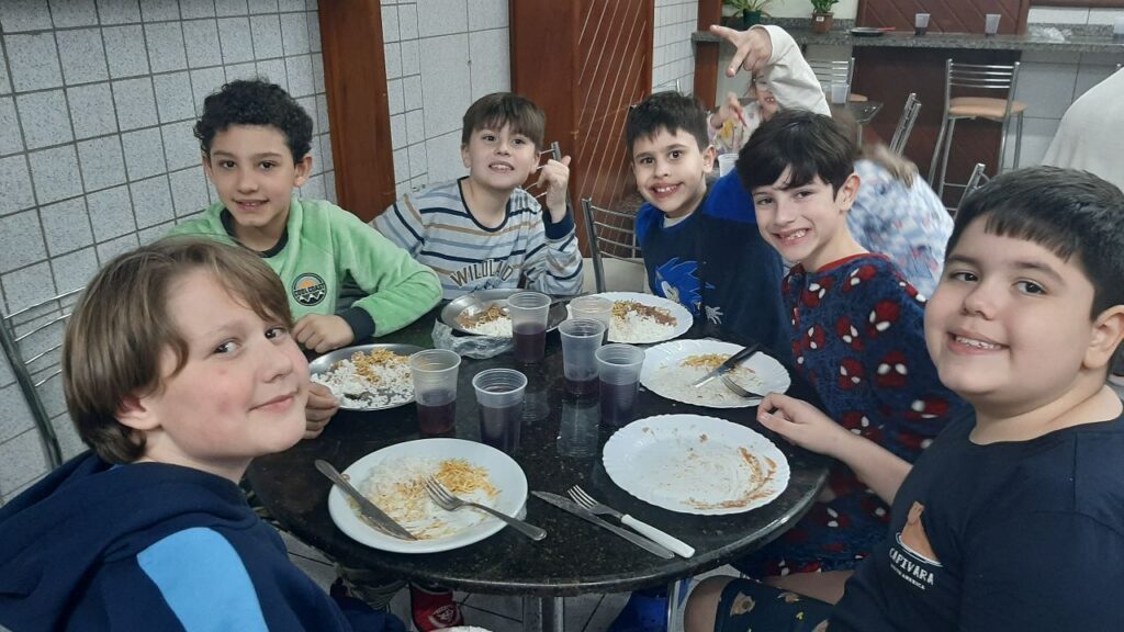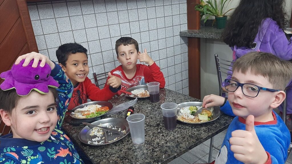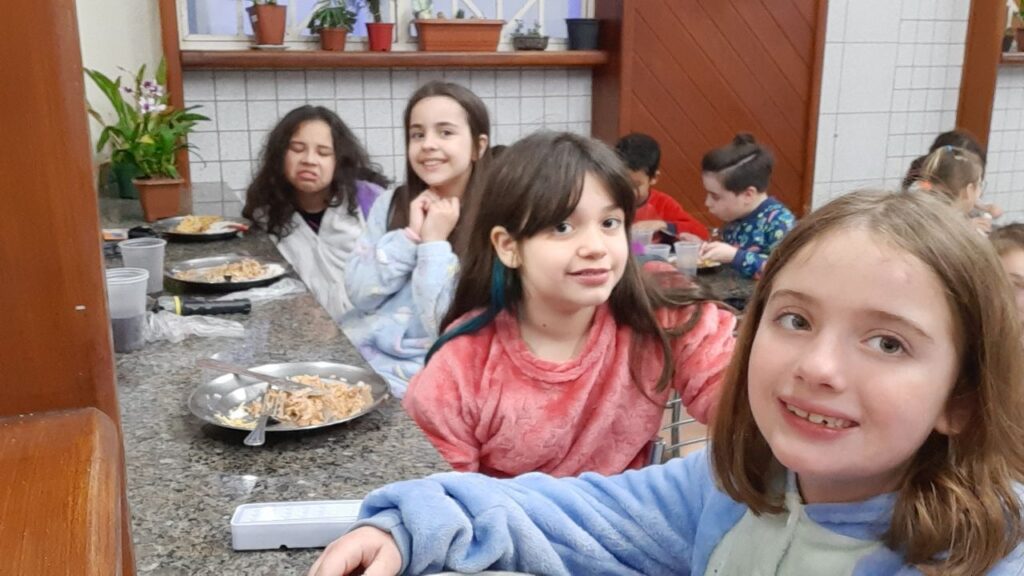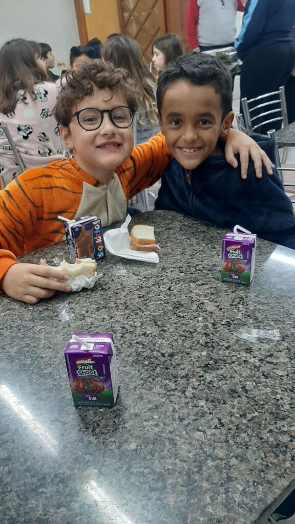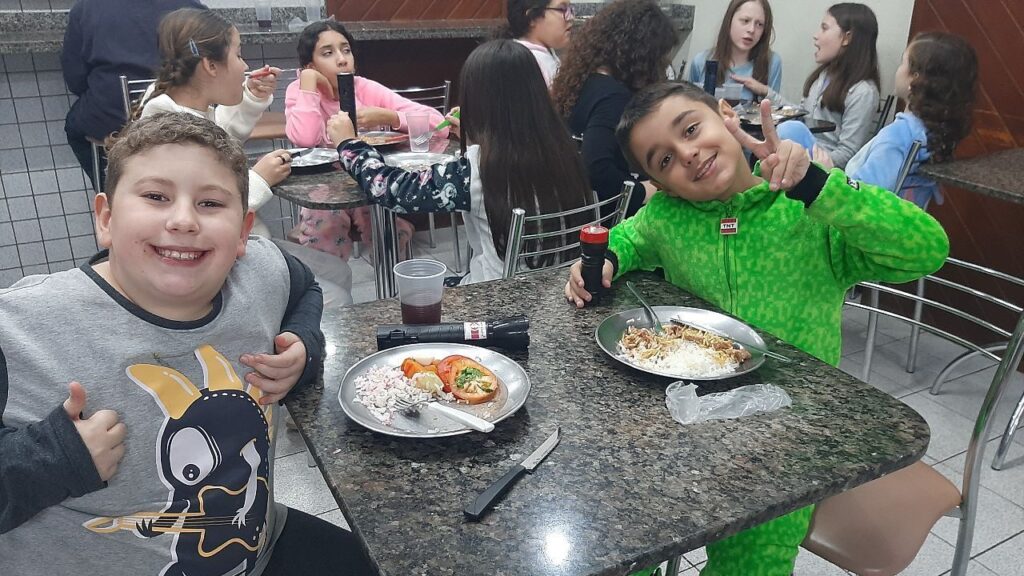 Teve até jantar e café da manhã, tornando essa noite ainda mais especial. Cada detalhe fez com que essa experiência se tornasse única e mágica, marcando para sempre a memória dos nossos pequenos.