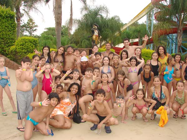 Mais de 30 crianças participantes da Colônia de Férias Sport Kids, foram ao parque aquático.