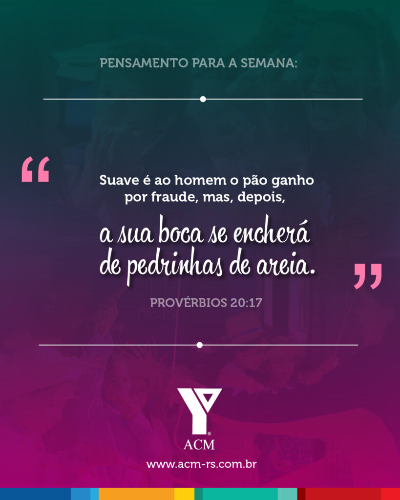 21 agosto 2023 Pensamento da Semana A ACM do Rio Grande do Sul te deseja uma linda e excelente semana. Gostou? Compartilhe essa notícia com seus amigos. Tweetar Compartilhar WhatsApp