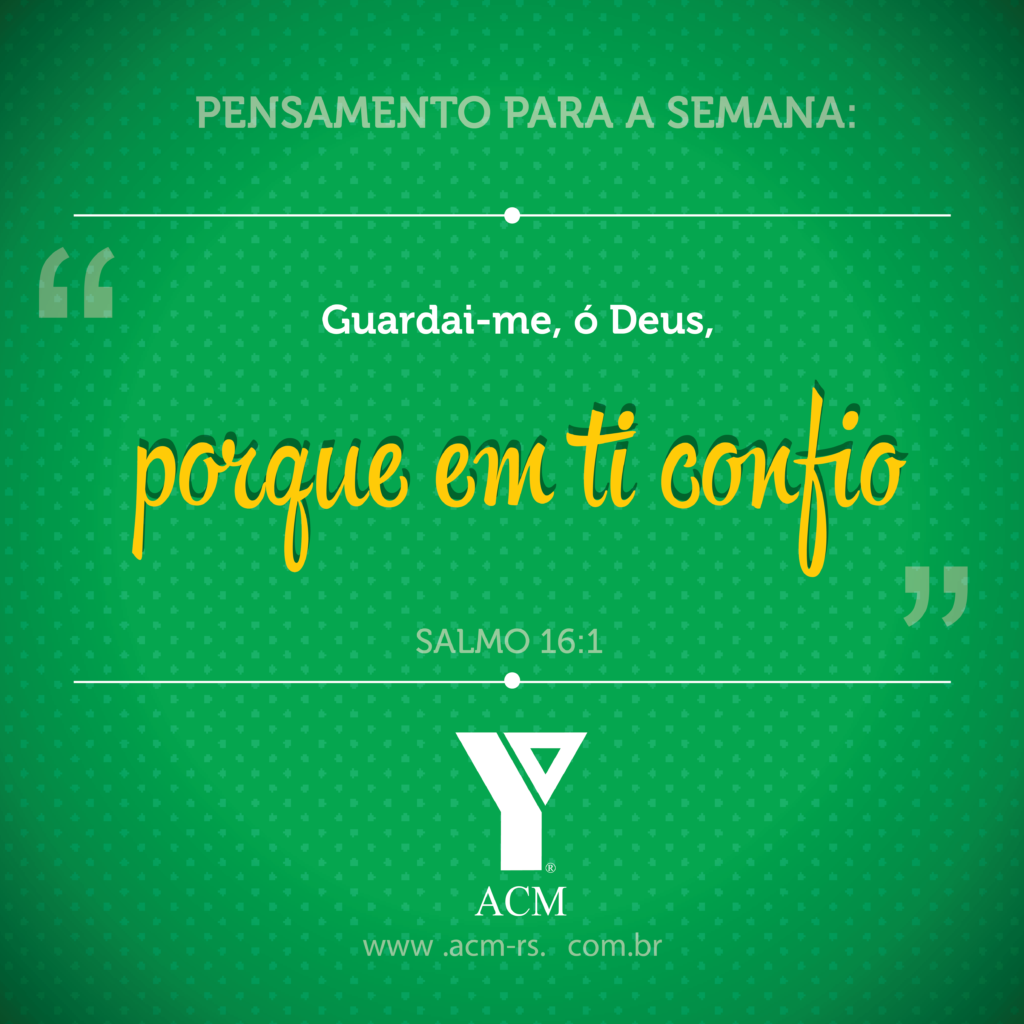 31 janeiro 2022 Pensamento da Semana Confie nas promessas de Deus. Ele te ama e quer que você seja o mais feliz possível. A ACM-RS deseja uma excelente semana para você. Gostou? Compartilhe essa notícia com seus amigos. Tweetar Compartilhar WhatsApp