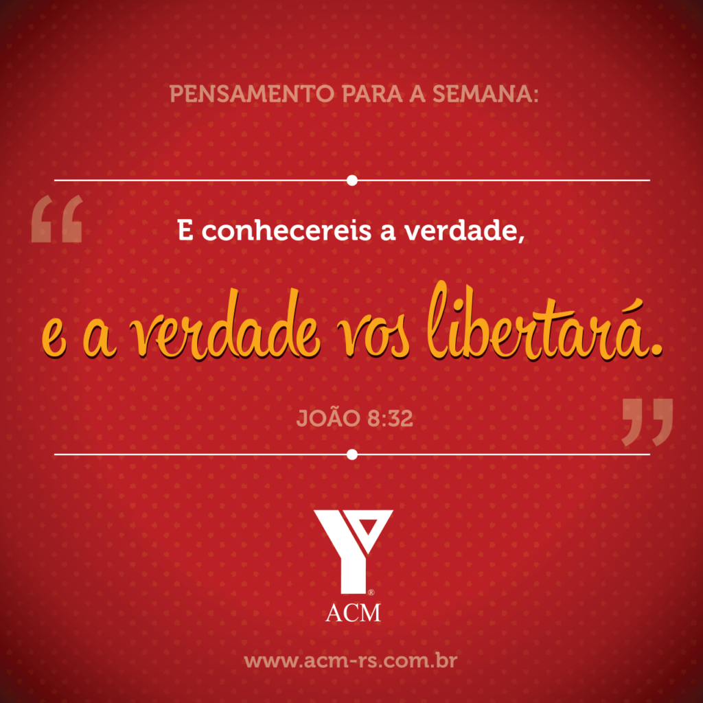 28 março 2022 Pensamento da Semana A verdadeira liberdade provém do nosso Criador. Ela gera paz e felicidade em todas as pessoas. A ACM-RS te deseja uma excelente semana! Gostou? Compartilhe essa notícia com seus amigos. Tweetar Compartilhar WhatsApp