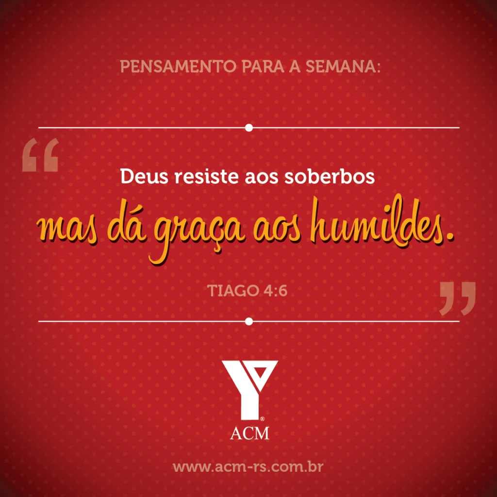 30 maio 2022 Pensamento da Semana A humildade é uma virtude que Deus deseja que seja colocada em prática na nossa vida. A ACM-RS te deseja uma ótima semana! Gostou? Compartilhe essa notícia com seus amigos. Tweetar Compartilhar WhatsApp