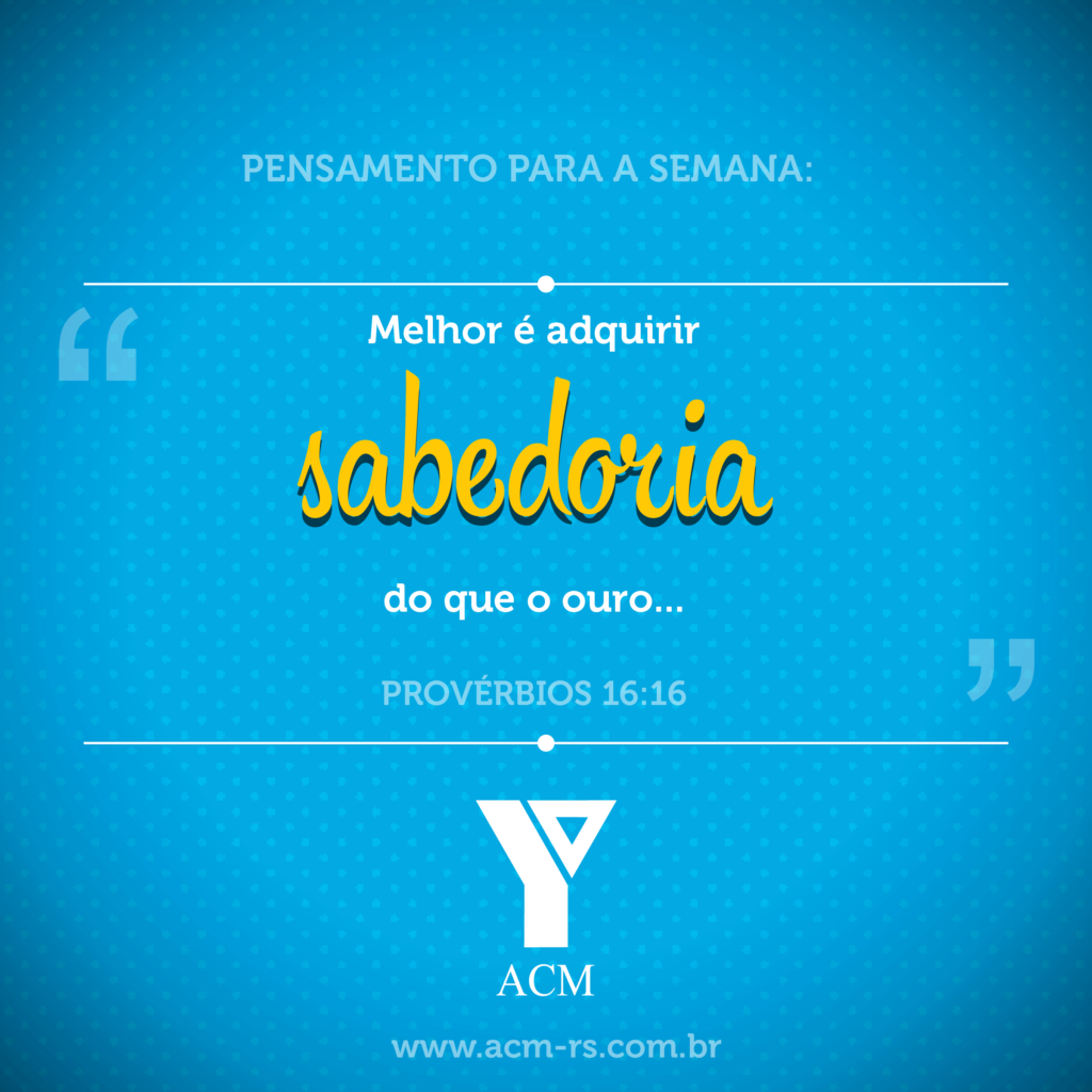 06 junho 2022 Pensamento da Semana Deus deseja que sejamos sábios nas escolhas que fazemos. Ele quer o nosso melhor. A ACM-RS deseja uma ótima semana para você. Gostou? Compartilhe essa notícia com seus amigos. Tweetar Compartilhar WhatsApp