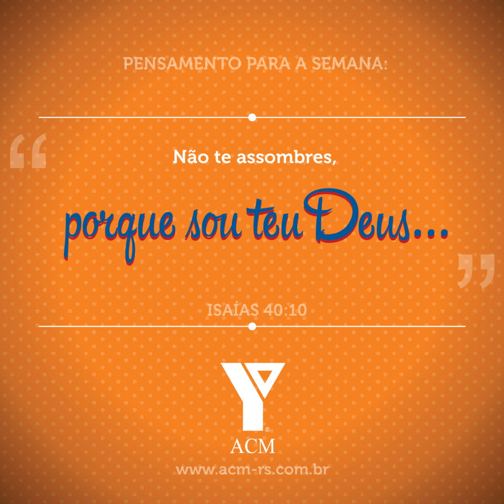 12 setembro 2022 Pensamento da Semana Confie sempre nas promessas e no cuidado de Deus. Ele quer o melhor para a tua vida. A ACM-RS te deseja uma ótima semana. Gostou? Compartilhe essa notícia com seus amigos. Tweetar Compartilhar WhatsApp