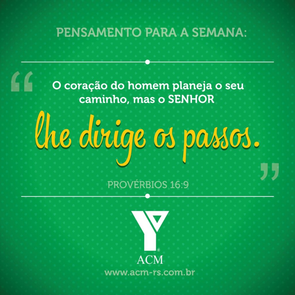 19 setembro 2022 Pensamento da Semana Permita que Deus seja o condutor da sua vida. Ele quer lhe dar o que existe de melhor neste mundo. A ACM-RS te deseja uma excelente semana. Gostou? Compartilhe essa notícia com seus amigos. Tweetar Compartilhar WhatsApp