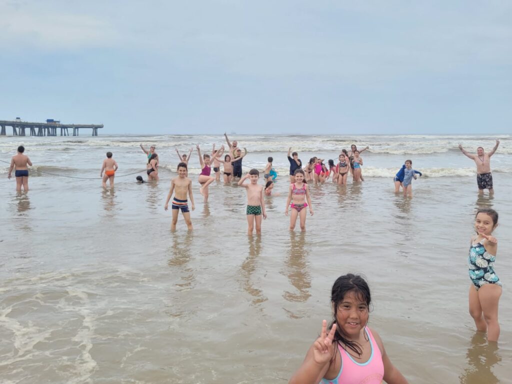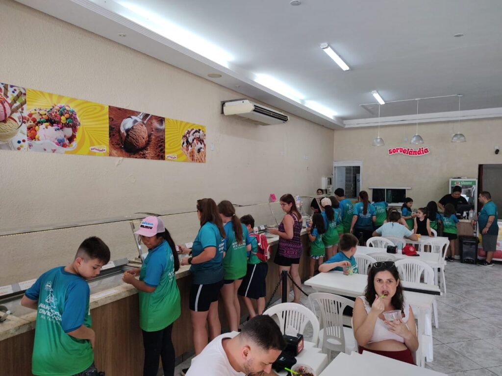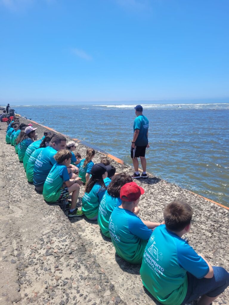 A tarde foi o momento mais esperado por todos, com a ida até a orla de Tramandaí. No contato com o mar, os alunos entraram na água sob a supervisão dos professores e participaram ainda de diversas atividades recreativas na beira da praia.