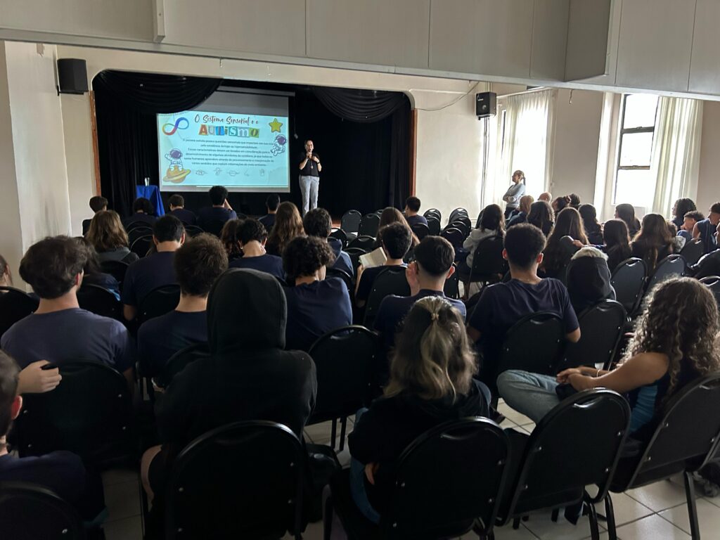 Já os alunos do Ensino Médio, tiveram uma palestra com a Profª. Dra. Cristine Silva que atua com Avaliação Diagnóstica para Neurodivergências e Atendimento Psicoterapêutico. A palestrante trouxe a temática da diversidade, desmistificando crenças e apresentando conceitos e verdades sobre o autismo.