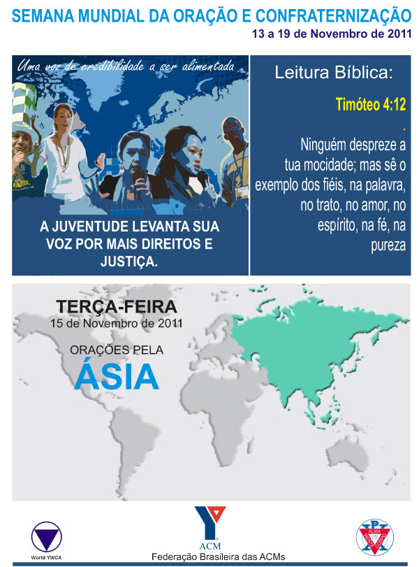 15 novembro 2011 Semana Mundial da Oração e Confraternização: terça-feira Confira a orientação para esta terça-feira, 15 de novembro, e organize seu grupo de oração. Gostou? Compartilhe essa notícia com seus amigos. Tweetar Compartilhar WhatsApp