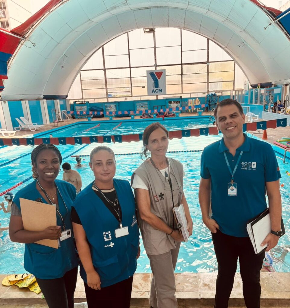 A ACM Esportes Centro, unidade da ACM-RS, recebeu, nesta semana, a visita da Vigilância Sanitária para a realização de uma inspeção técnica de rotina nas áreas de piscina. A ação faz parte dos procedimentos regulares de fiscalização e teve como objetivo verificar as condições de segurança, higiene e a qualidade dos serviços oferecidos aos usuários.